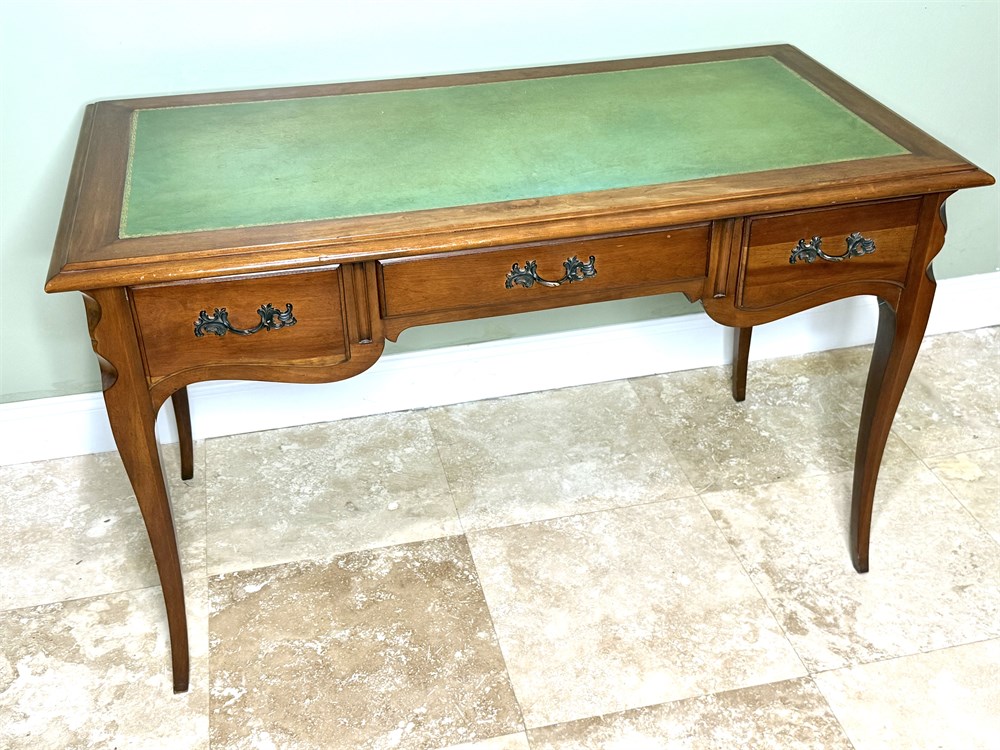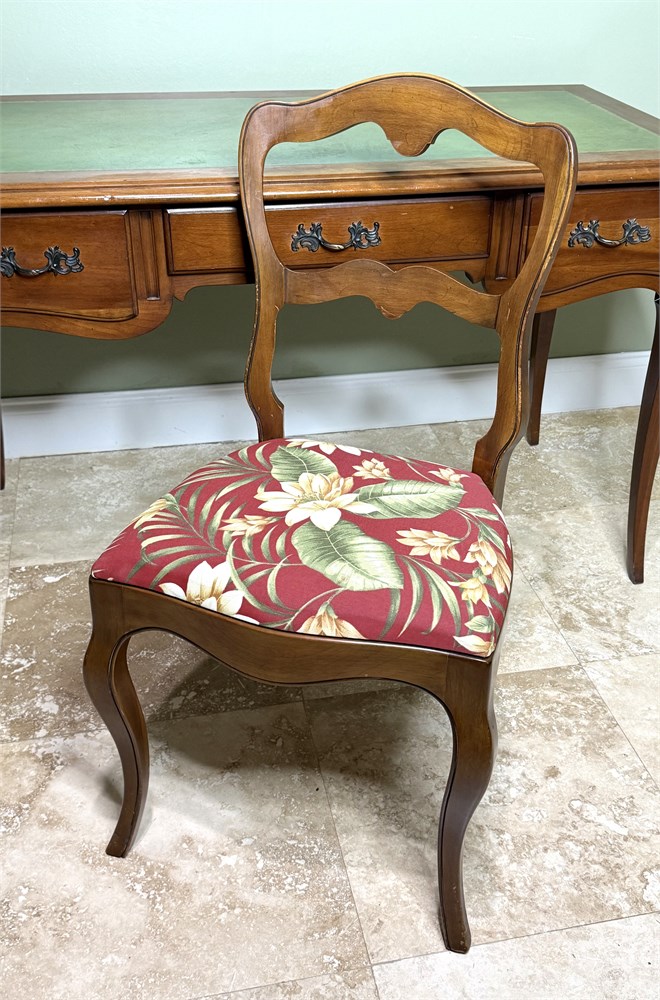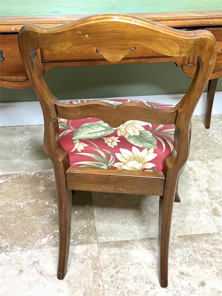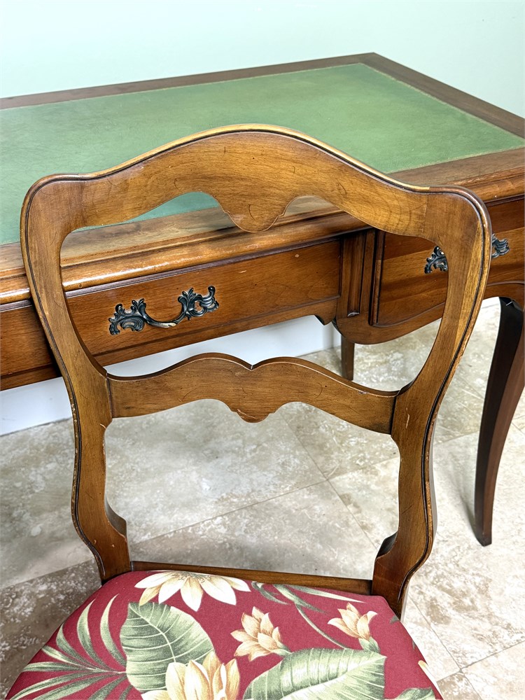 Vintage Solid Wood Writing Desk with Leather Inlay and Solid Wood Desk Chair View Watchlist >