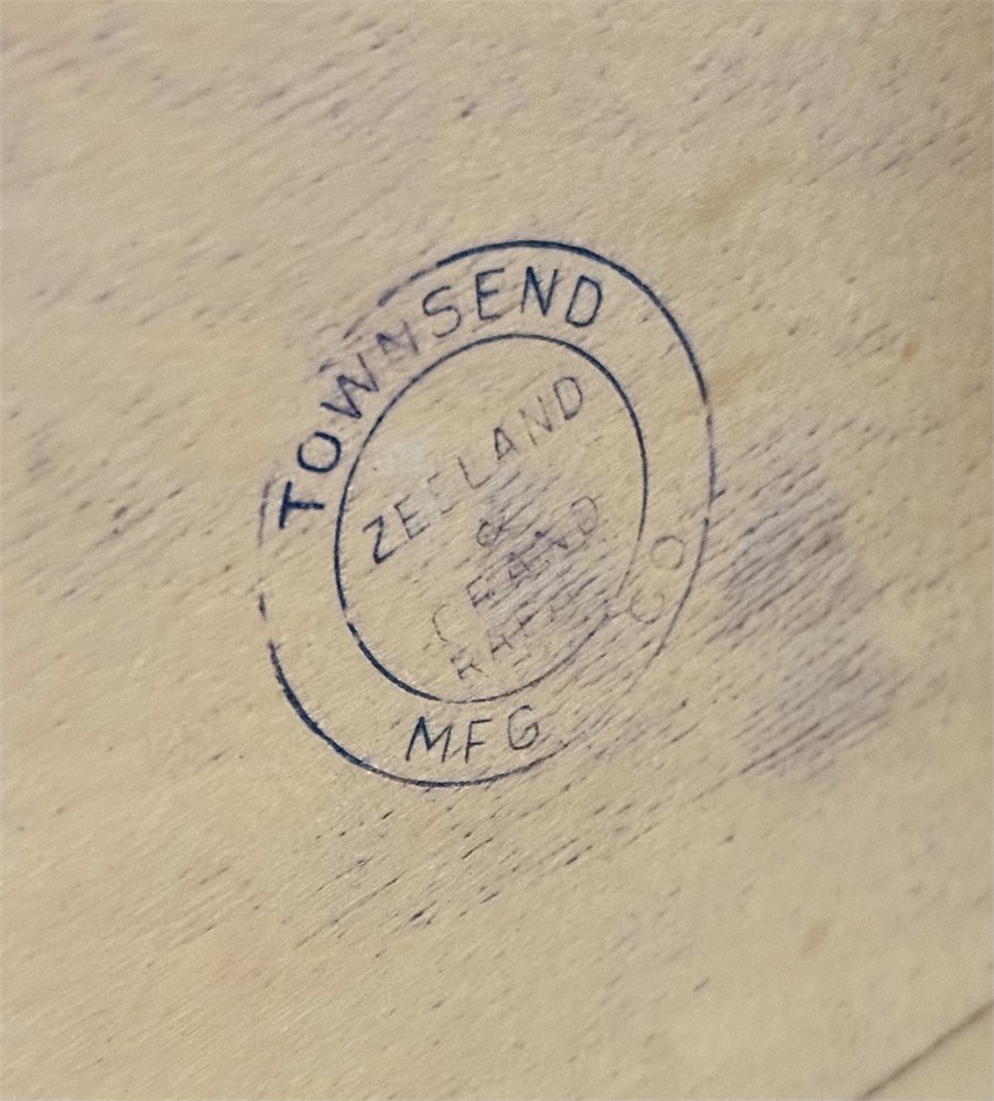 Desk manufacturer's stamp is on the bottom of desk and is shown in a picture below.