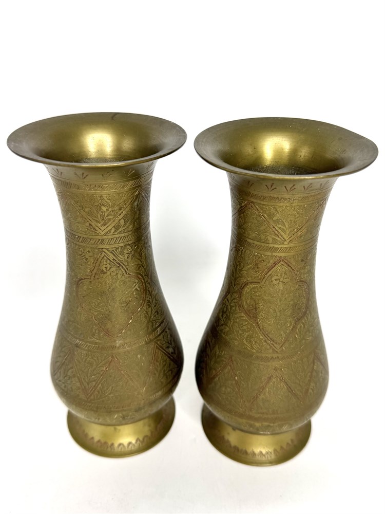 Set of 2 Brass Vases with Red Accents View Watchlist >