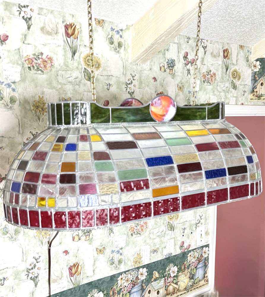 Hand Made Stained Glass Hanging Pool Table Style Ceiling Light 1 View Watchlist >