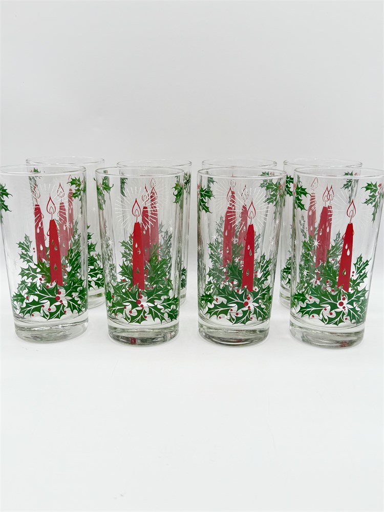 Vtg. Christmas Candle & Holly Glasses ~ Set Of (8) View Watchlist >