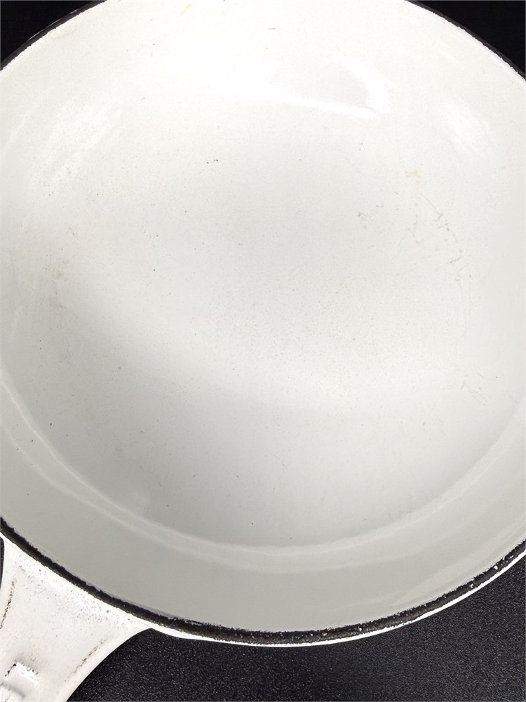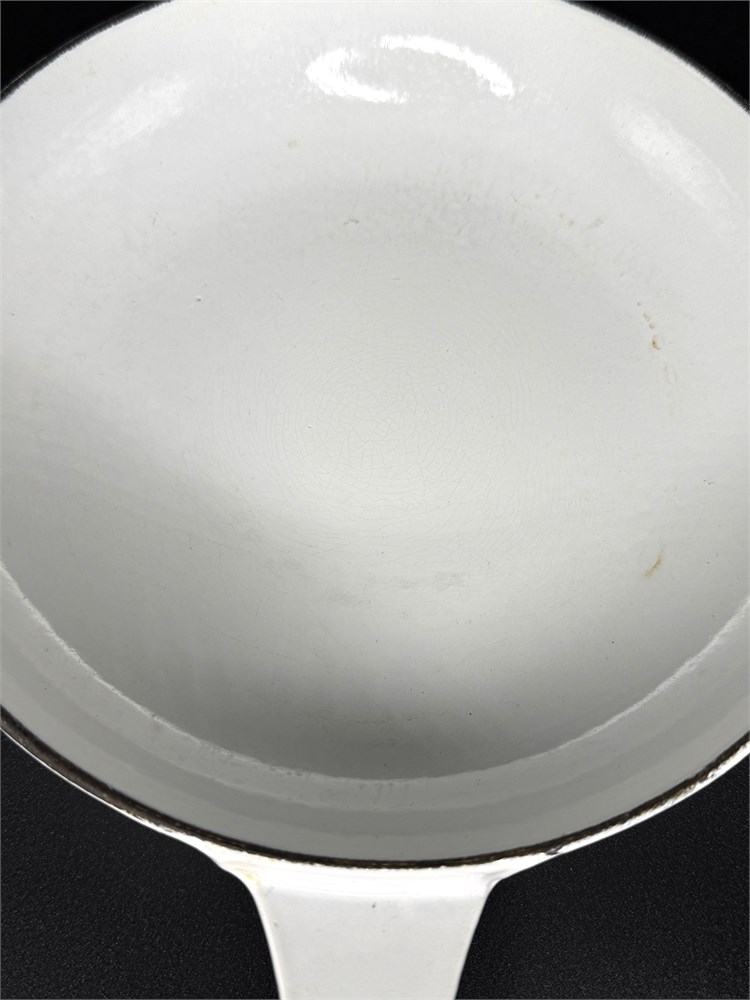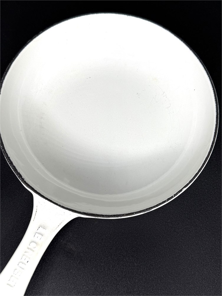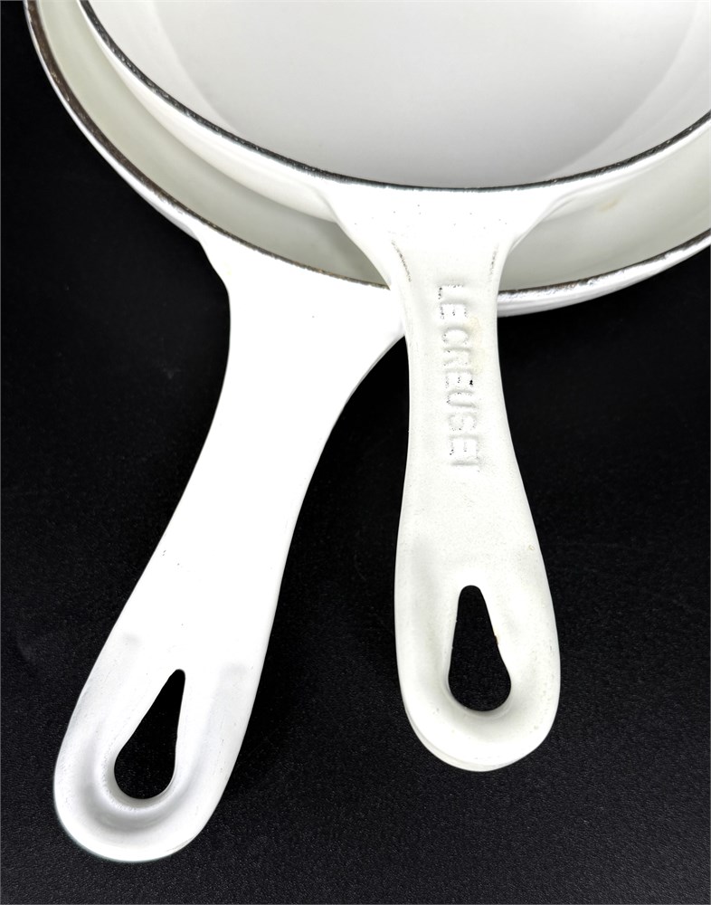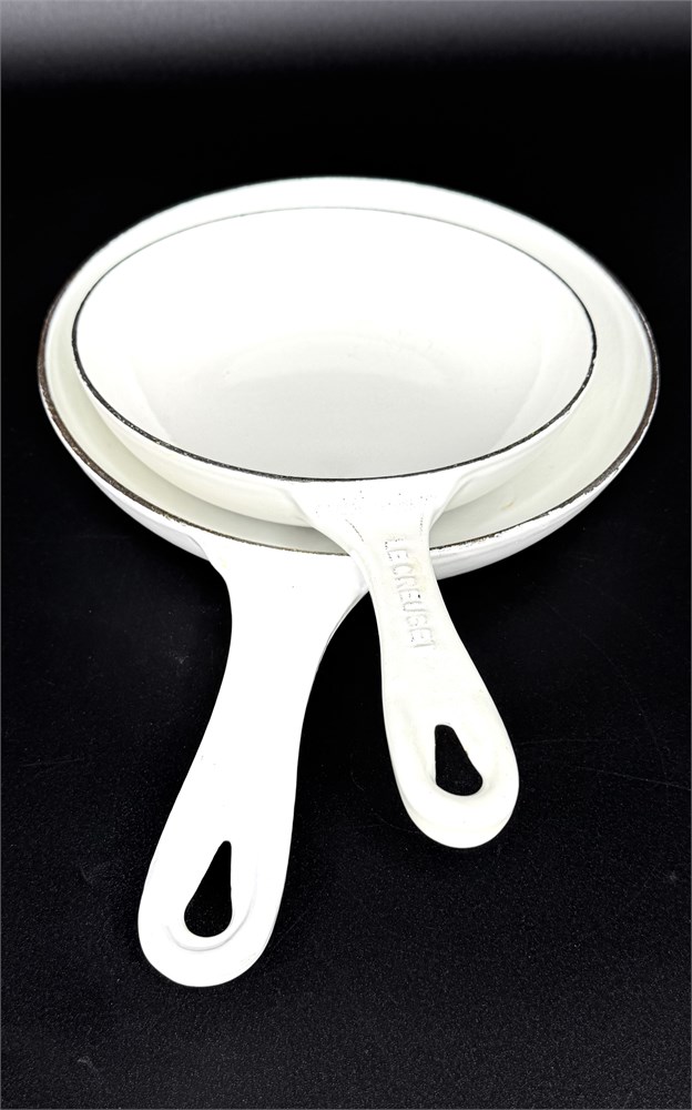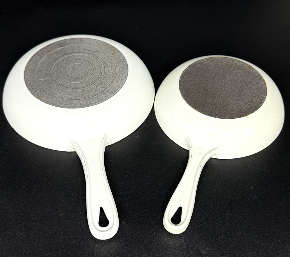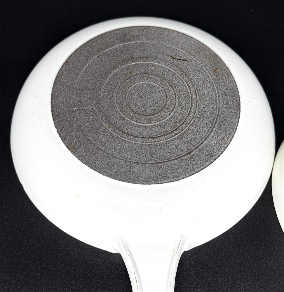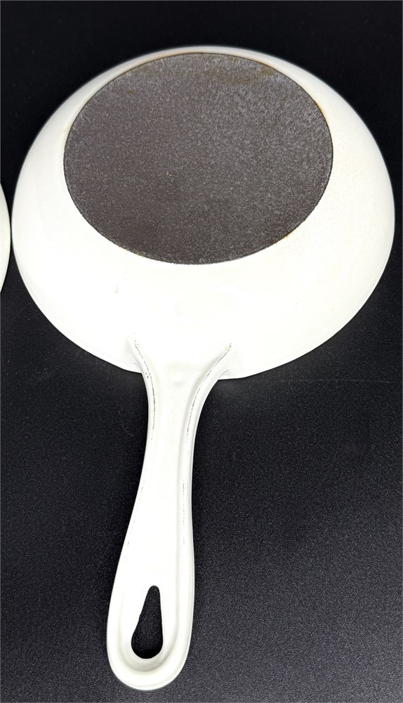 Set of 2 White Enamel Cast Iron Pans - One is Le Creuset and One is Not Marked View Watchlist >
