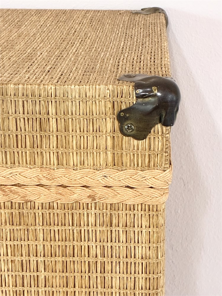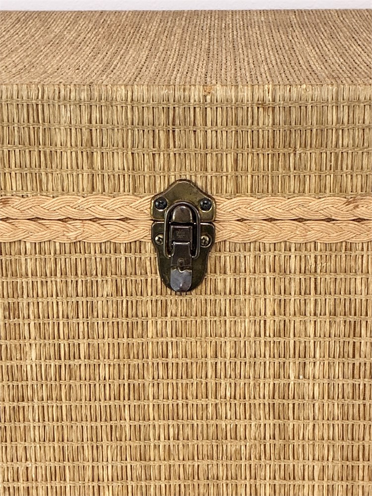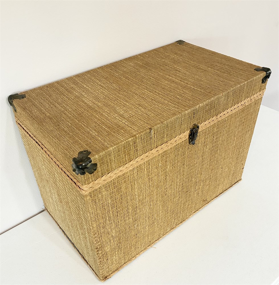 Vtg Wicker/Rattan Decorative Storage Trunk W/ Brass Accents View Watchlist >