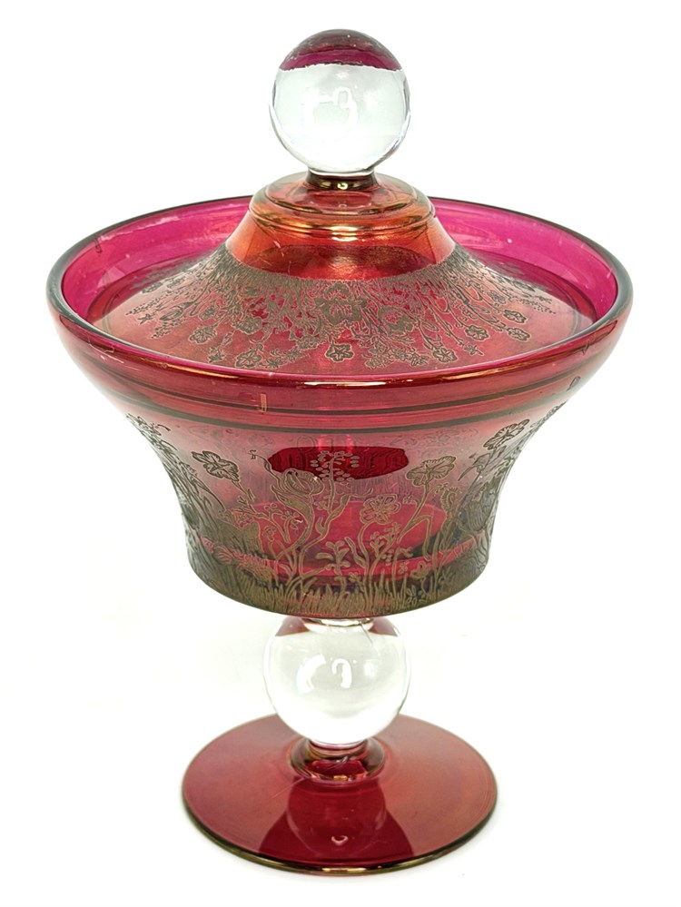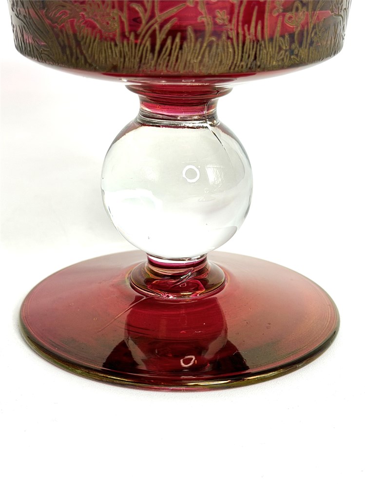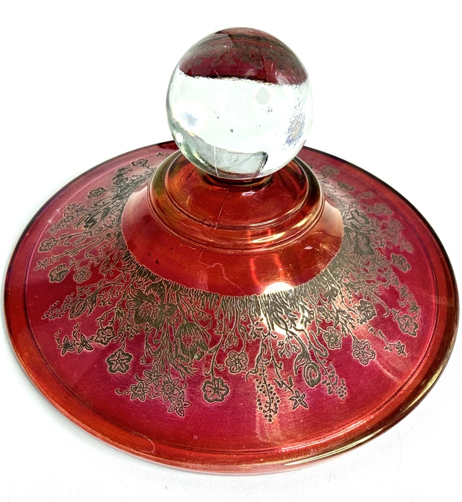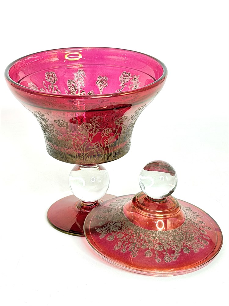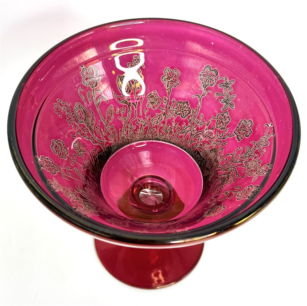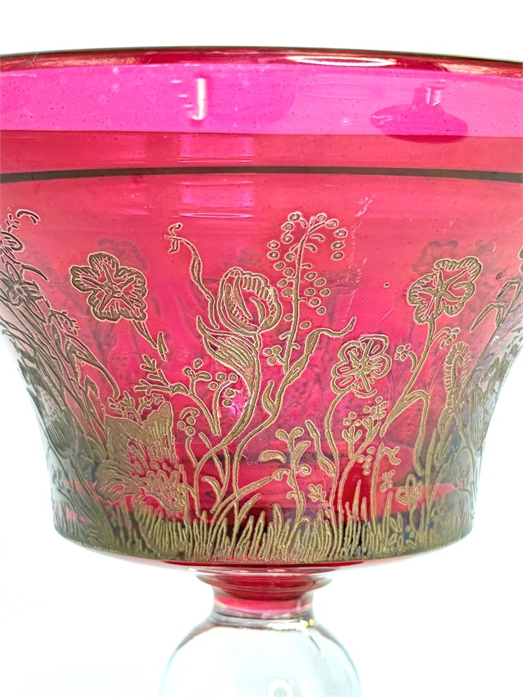 Cranberry Glass Bowl with Gold Flower Etching View Watchlist >