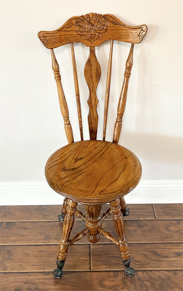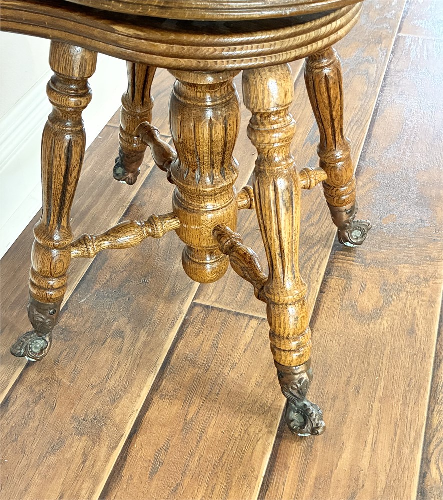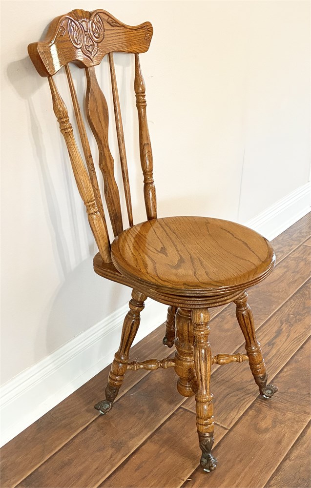 Vtg Solid Oak Piano/Organ Chair W/ Copper Claw Feet & Glass Casters View Watchlist >