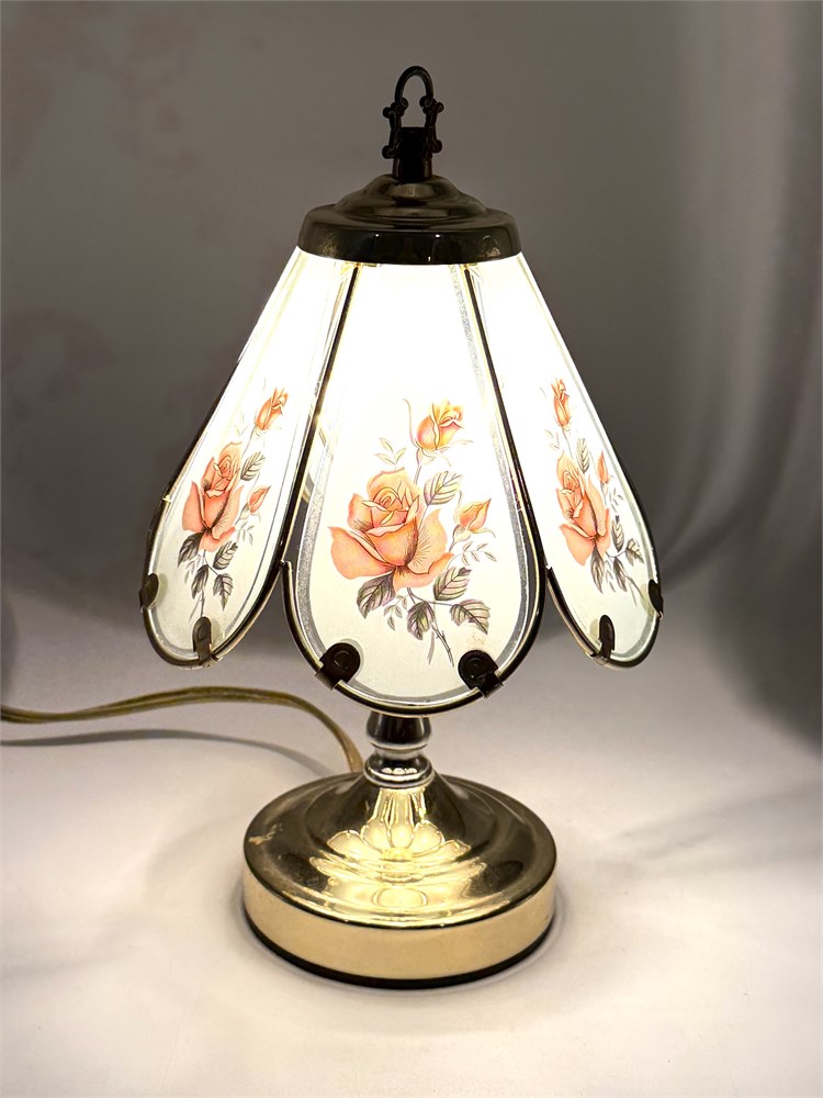 Vintage Floral Rose Glass Panel Table Lamp View Watchlist >