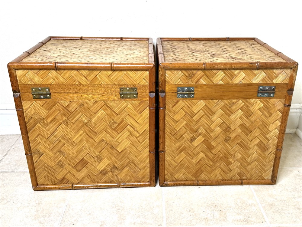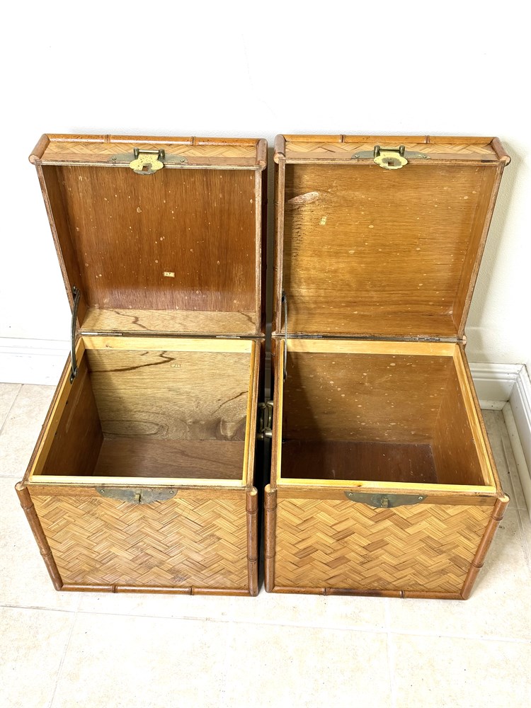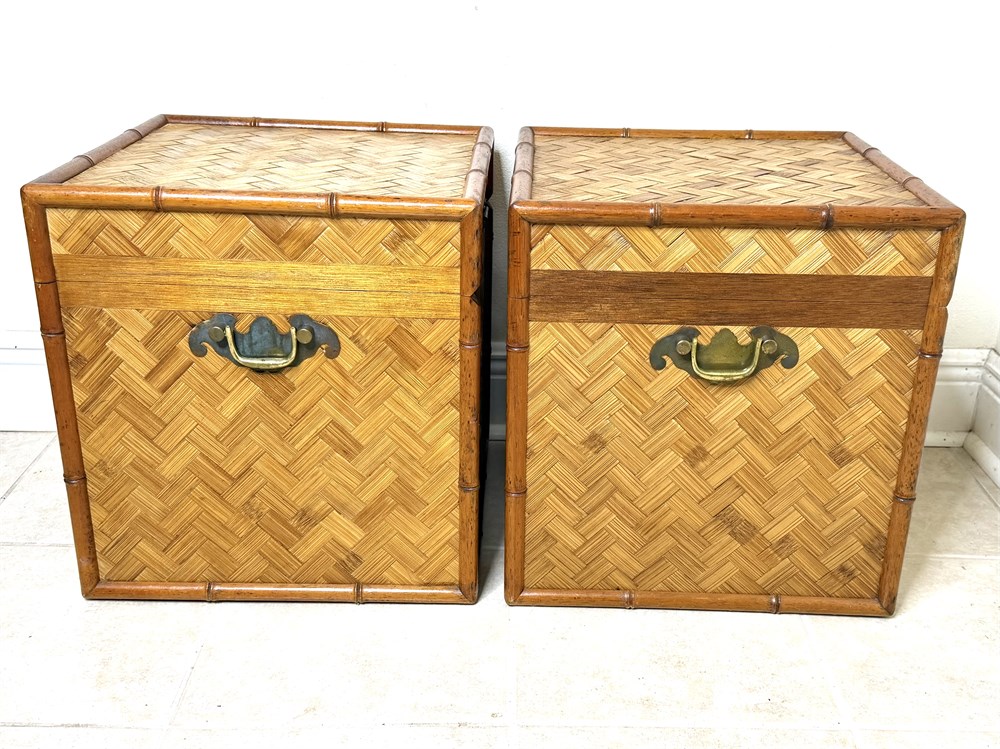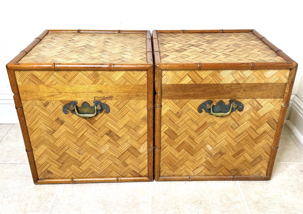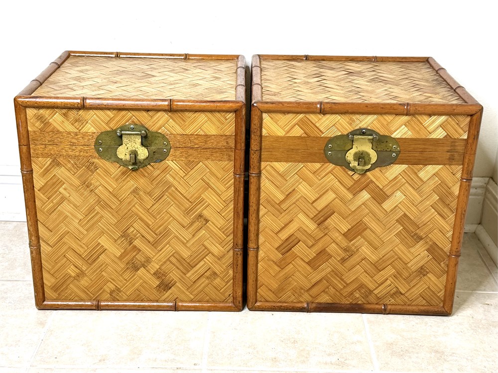 Set of 2 Vintage Chinoiserie Bamboo and Woven Wicker Trunks View Watchlist >