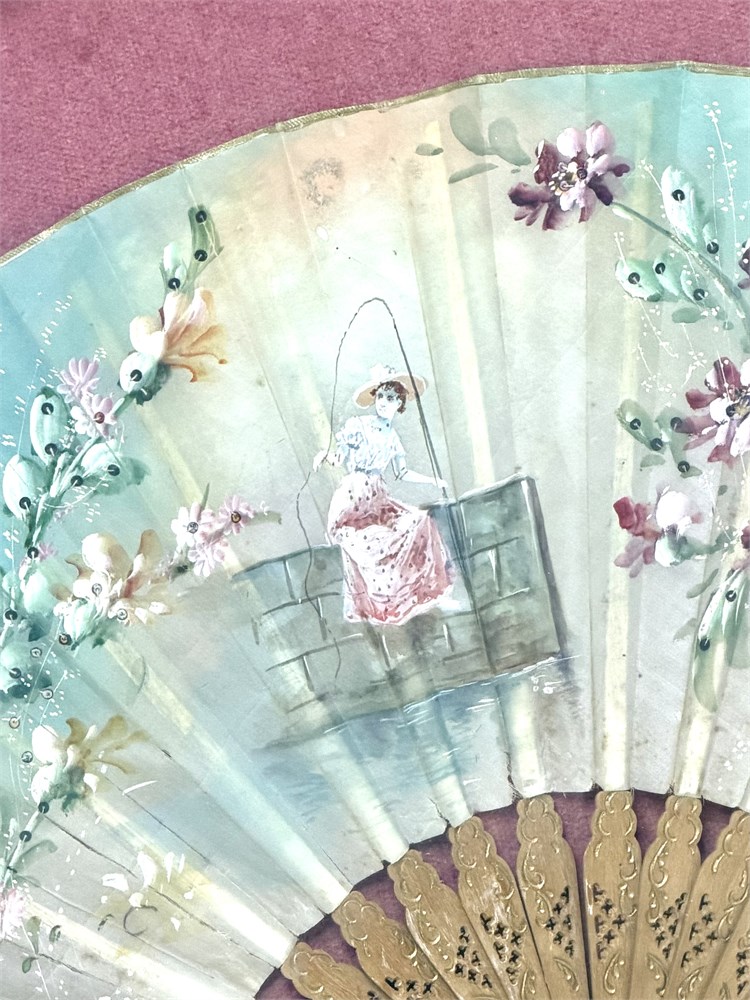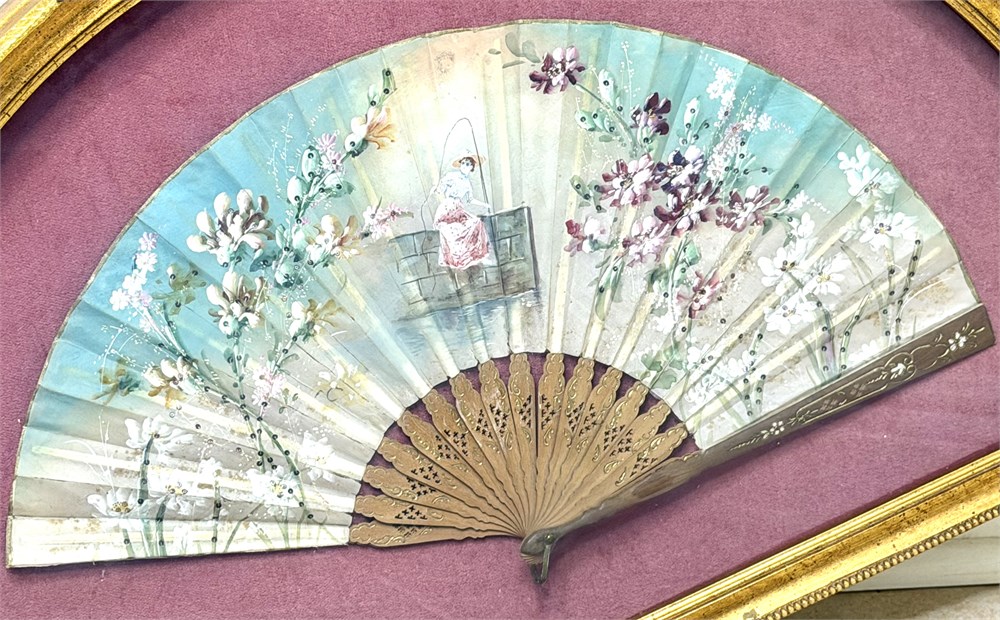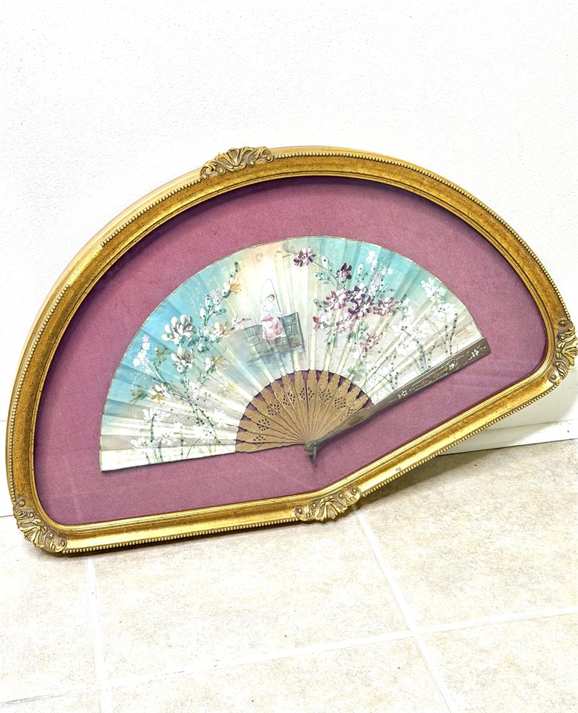 Vintage Hand-Painted Fan in Fan-Shaped Gilded Frame View Watchlist >