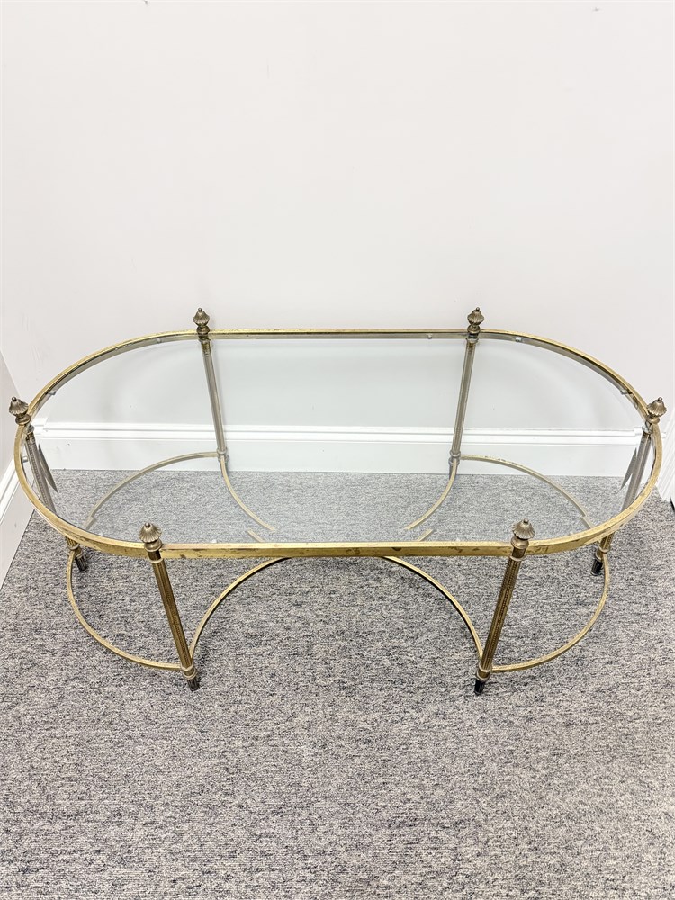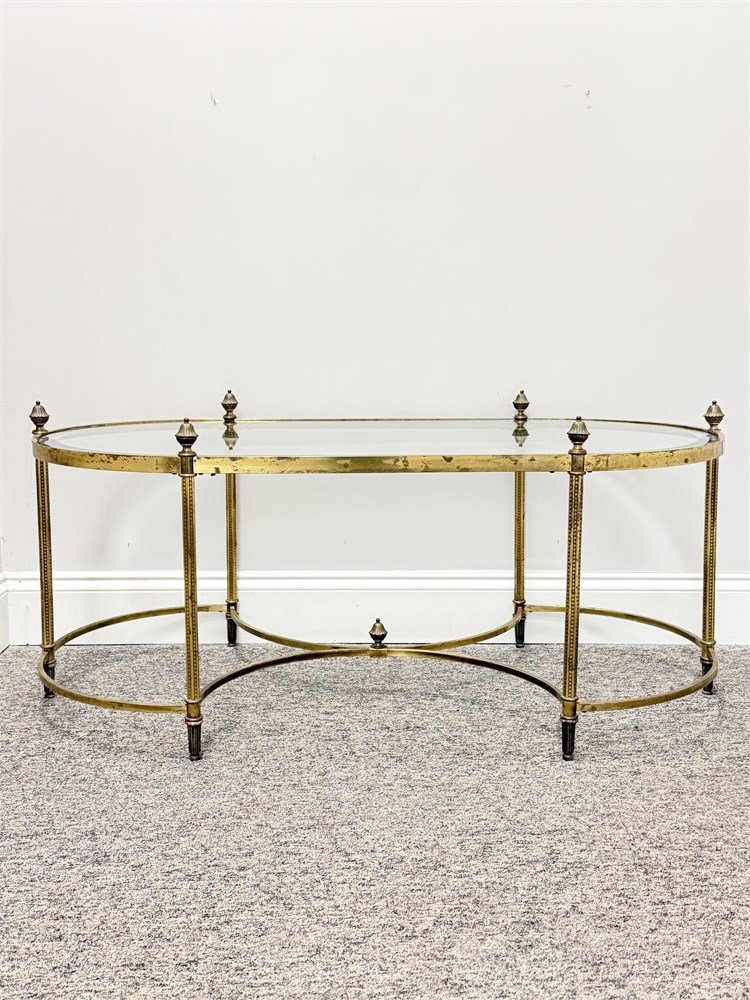 LABARGE HOLLYWOOD REGENCY ~ Vtg. Brass Oval Coffee Table With Beveled Glass View Watchlist >