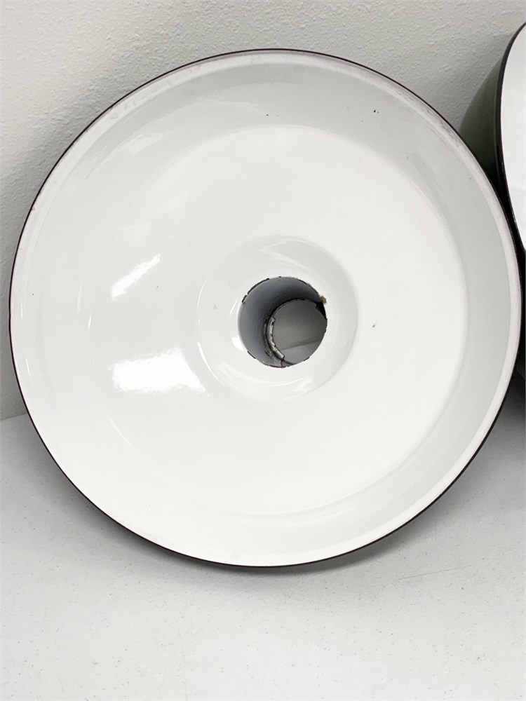 Set of 2 Vtg Porcelain Enamel Industrial Light Fixtures View Watchlist >