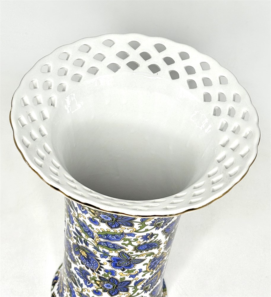 Vtg Baum Bros. Blue Paisley Reticulated Chintz Vase View Watchlist >