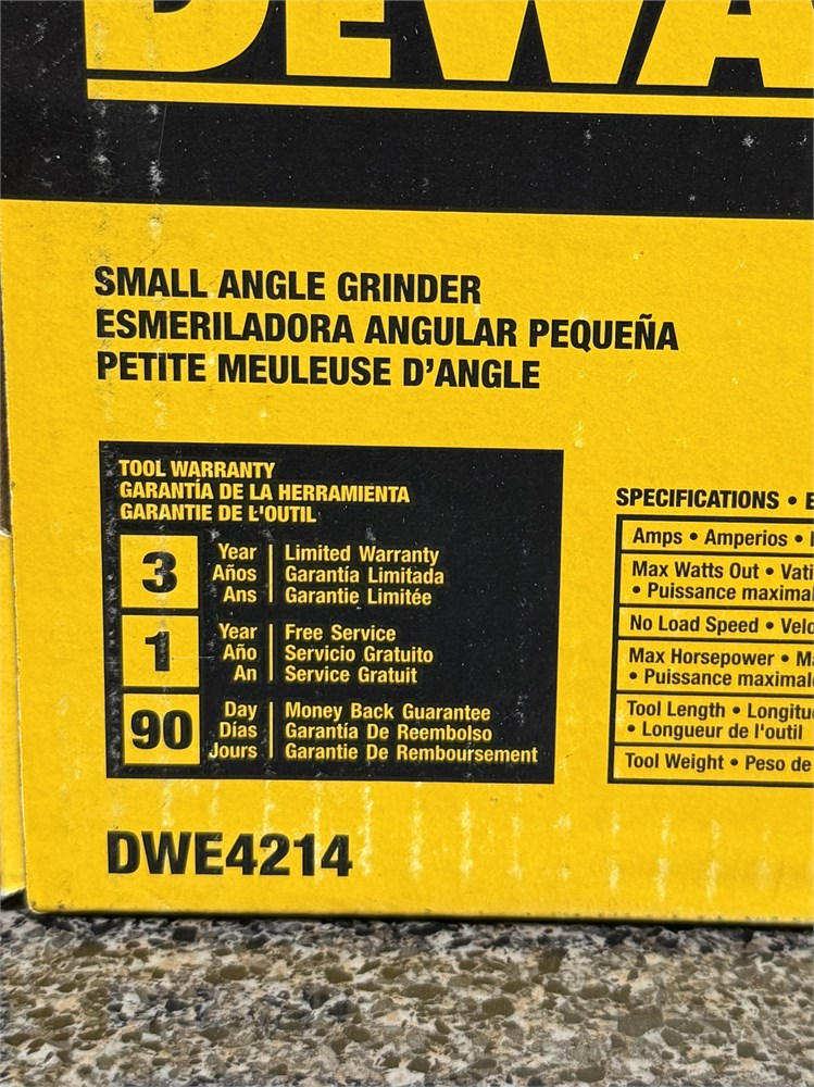 DEWALT ~ 4.5” Slide Switch Small Angle Grinder ~ NIB View Watchlist >