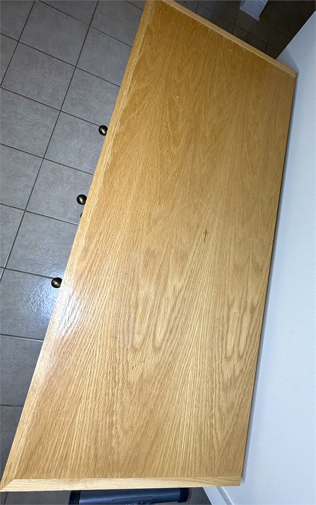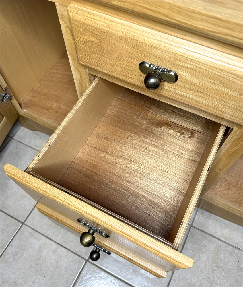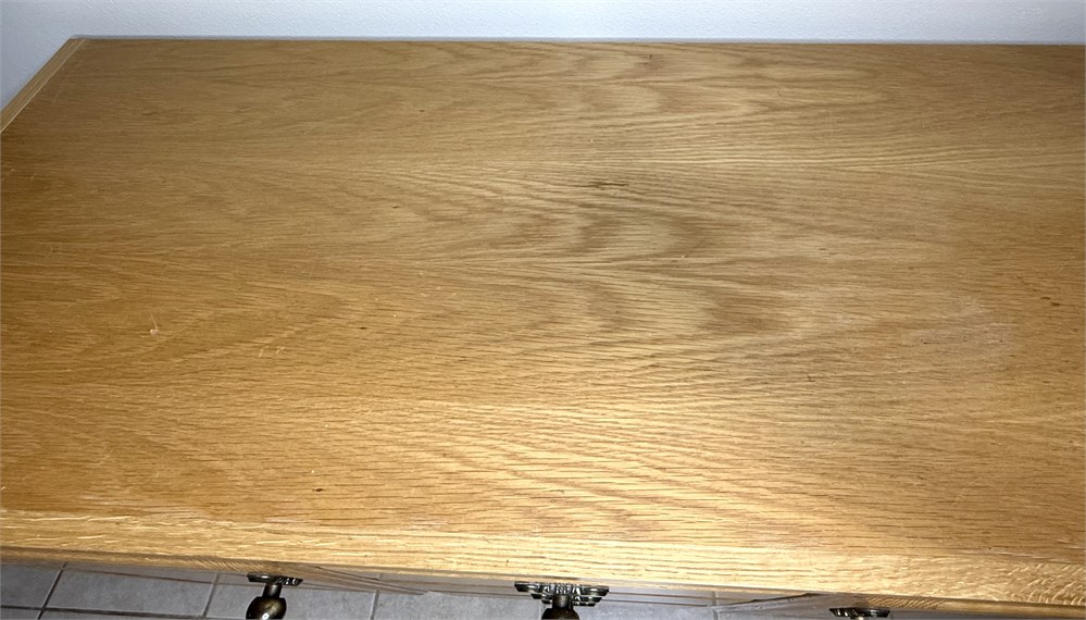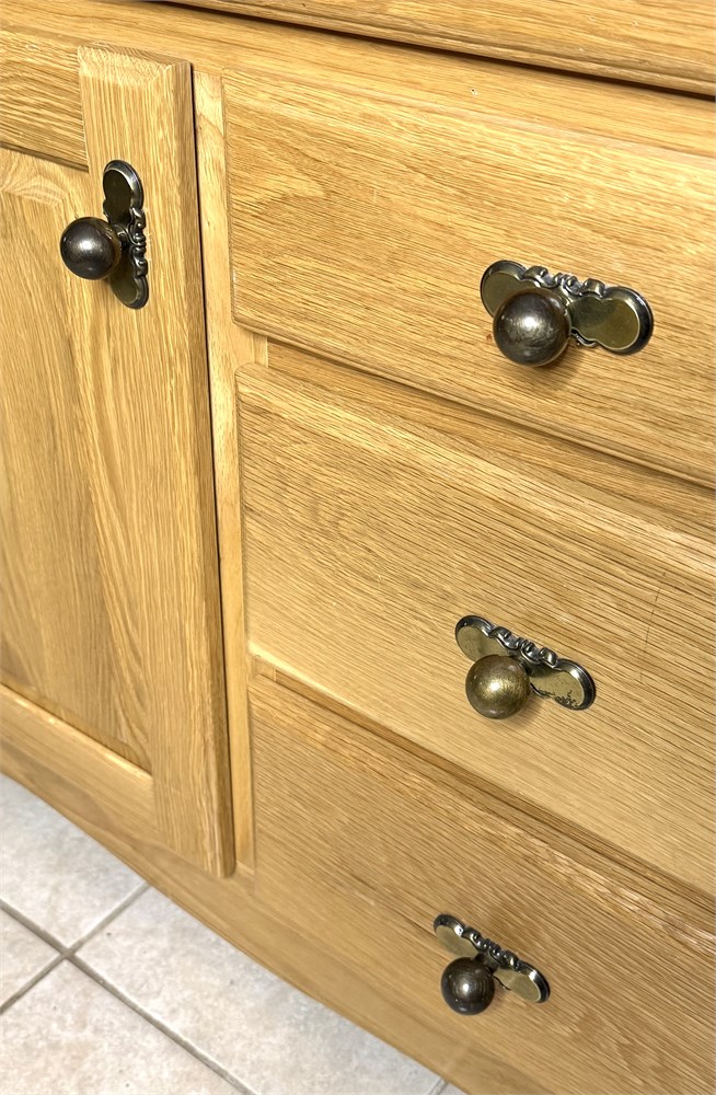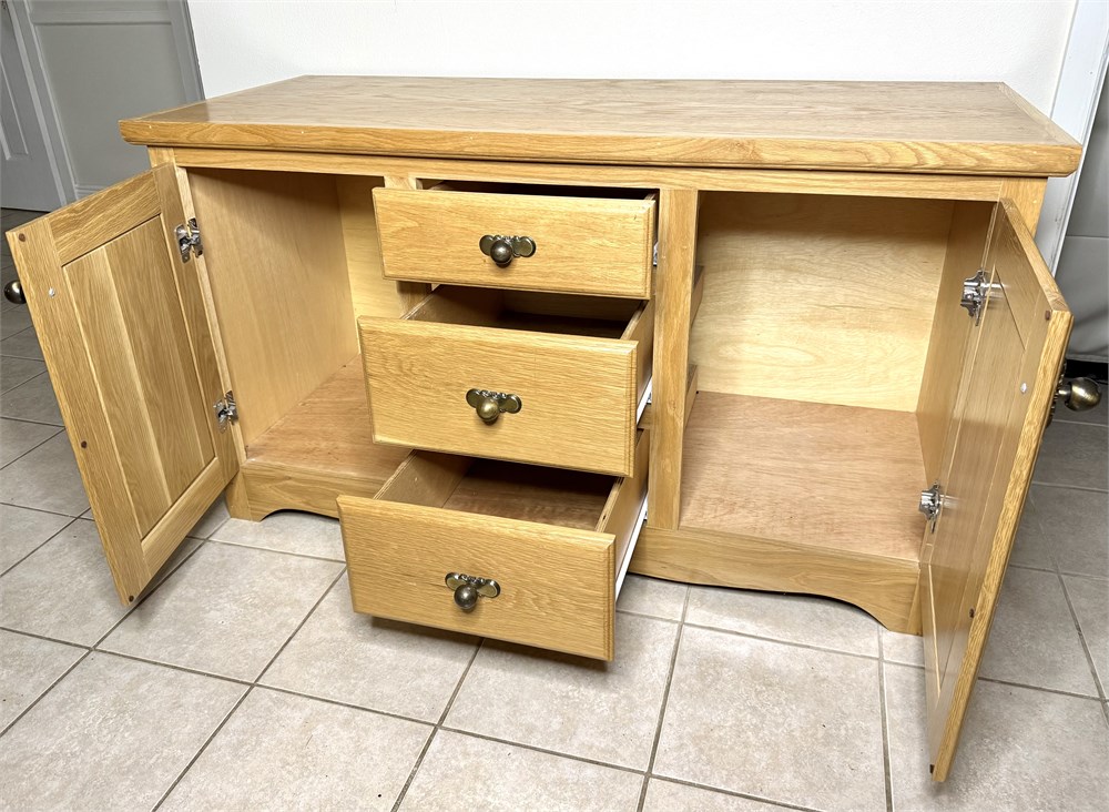 Vintage Oak Sideboard Cabinet with Brass Hardware #1 View Watchlist >