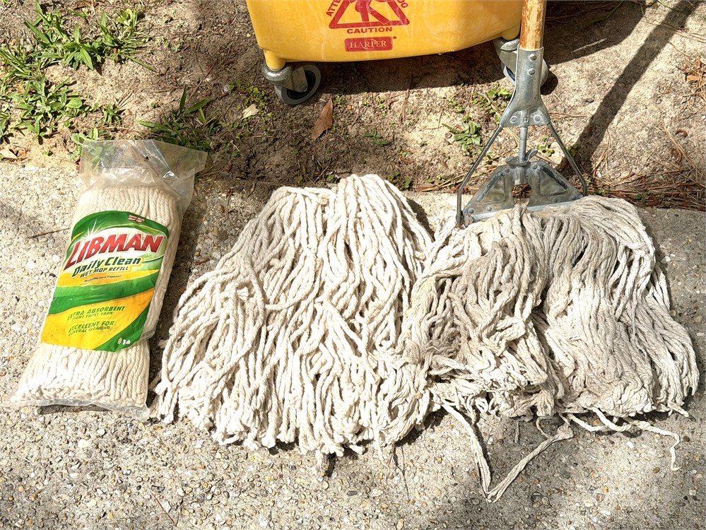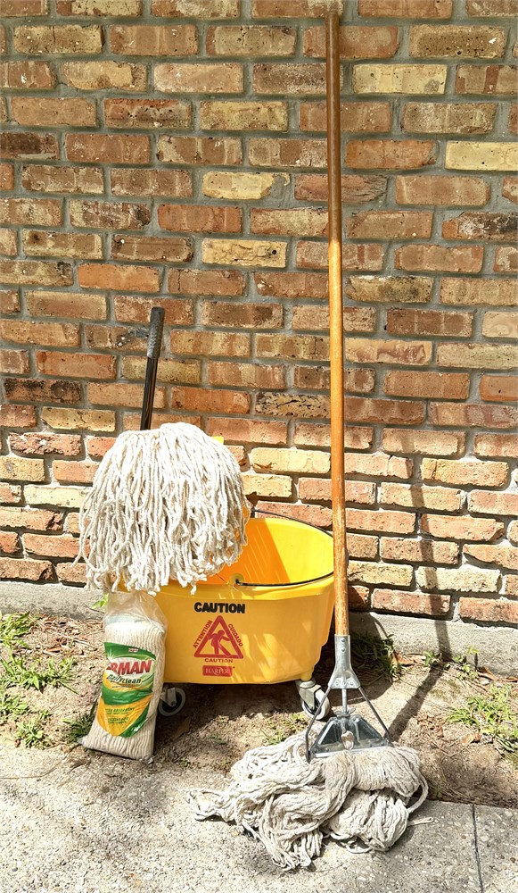 Plastic Yellow Mop Bucket with Side Wringer, Mop, and 2 Spare Mop Heads View Watchlist >