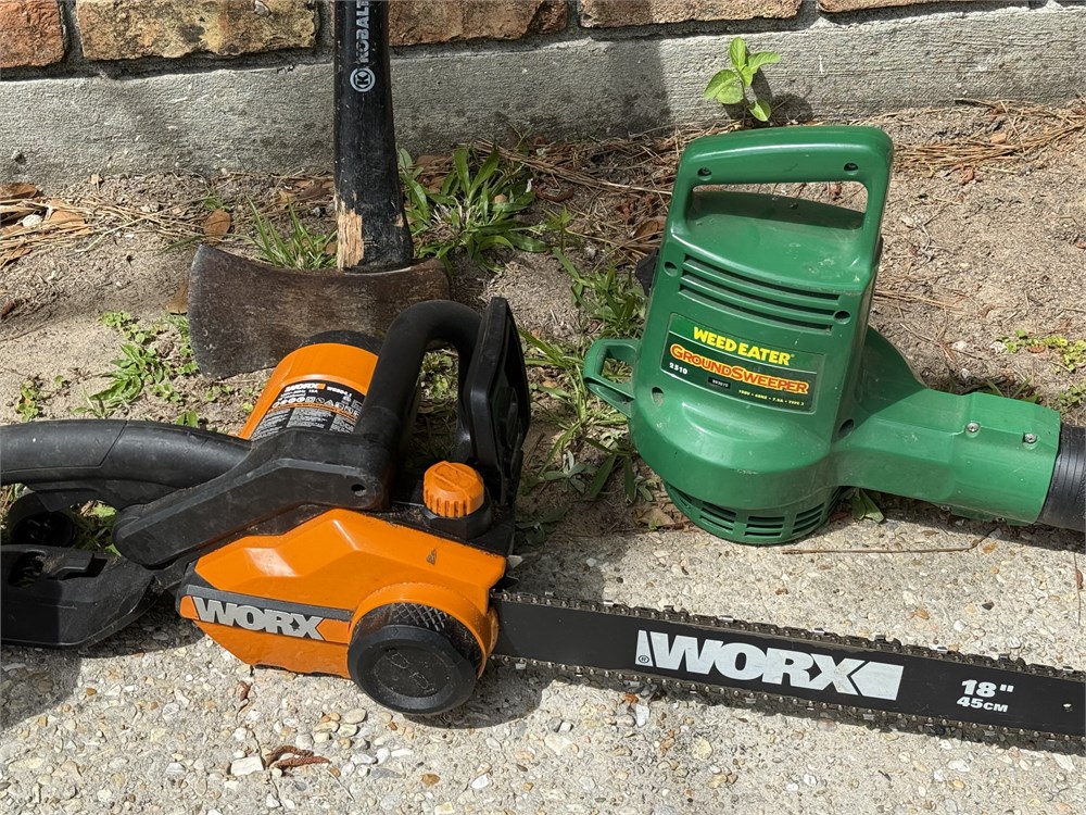 Electric Outdoor Tool Lot - Chain Saw, Pole Saw, Blower View Watchlist >